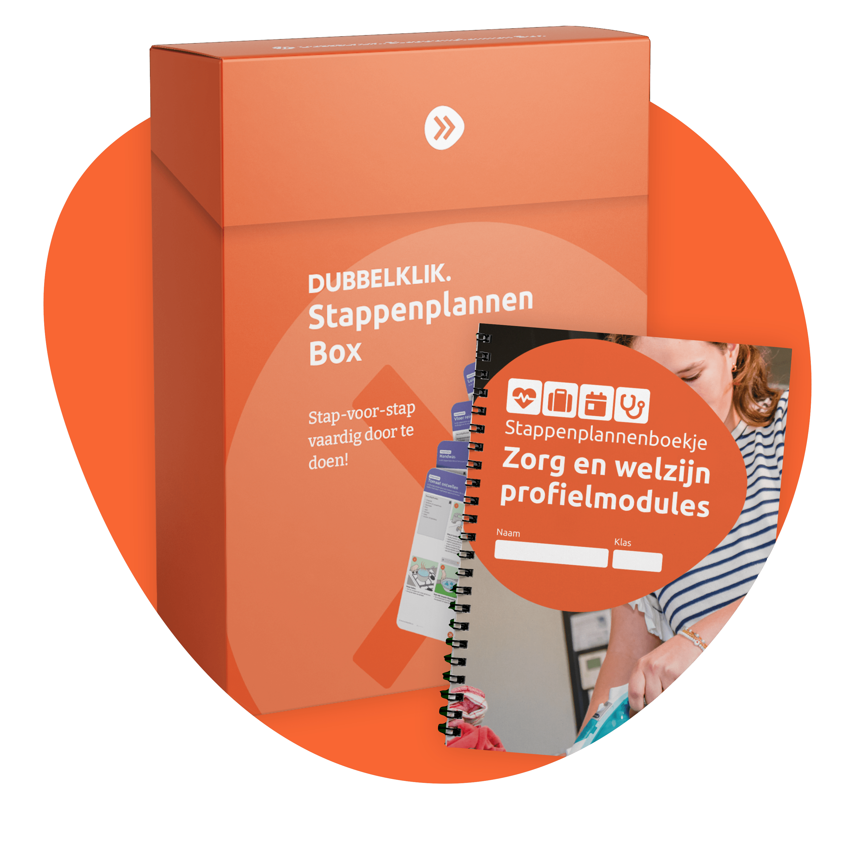 Alle stappenplannen in drievoud overzichtelijk gebundeld in een stevige bewaarbox. Perfect voor in het lokaal: makkelijk toegankelijk en ideaal om samen te gebruiken tijdens de lessen.