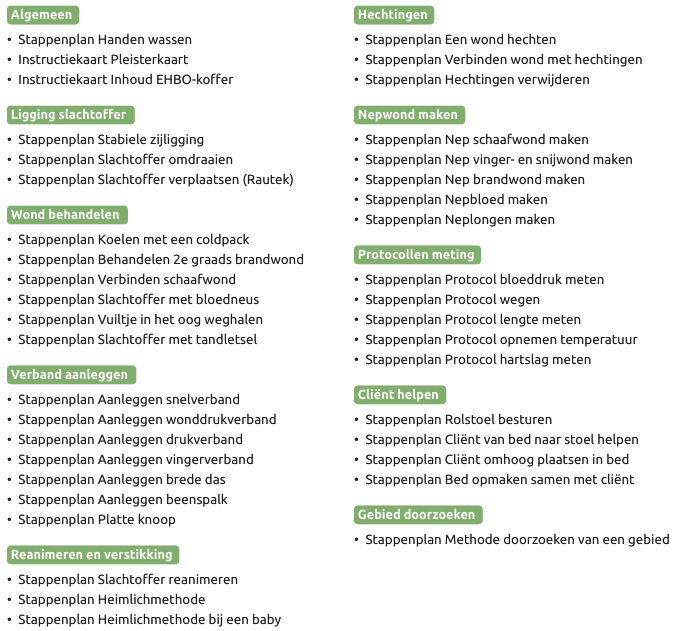 Met deze stappenplannen weten je leerlingen hoe ze moeten handelen bij ongevallen. hebben je leerlingen stap-voor-stap de praktische handelingen aangeleerd die horen bij de profielmodules van Zorg en Welzijn en zijn ze klaar voor het cspe.